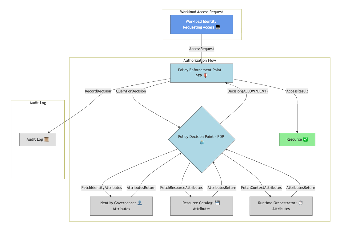 This cross-domain model ensures that access decisions consider both the actor and its origin. For example, even a valid certificate is rejected if it comes from an unverified build pipeline.