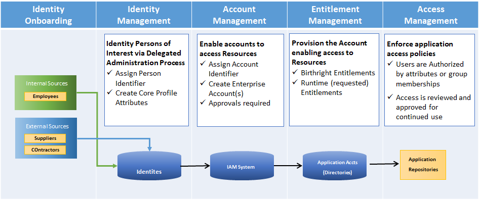 | Identity Provisioning | Creates identity records based on initiation from trusted identity sources (e.g., the HR System) |